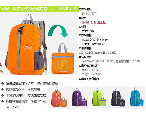 • 輕城 ·SNBN17極簡主義折疊雙肩包